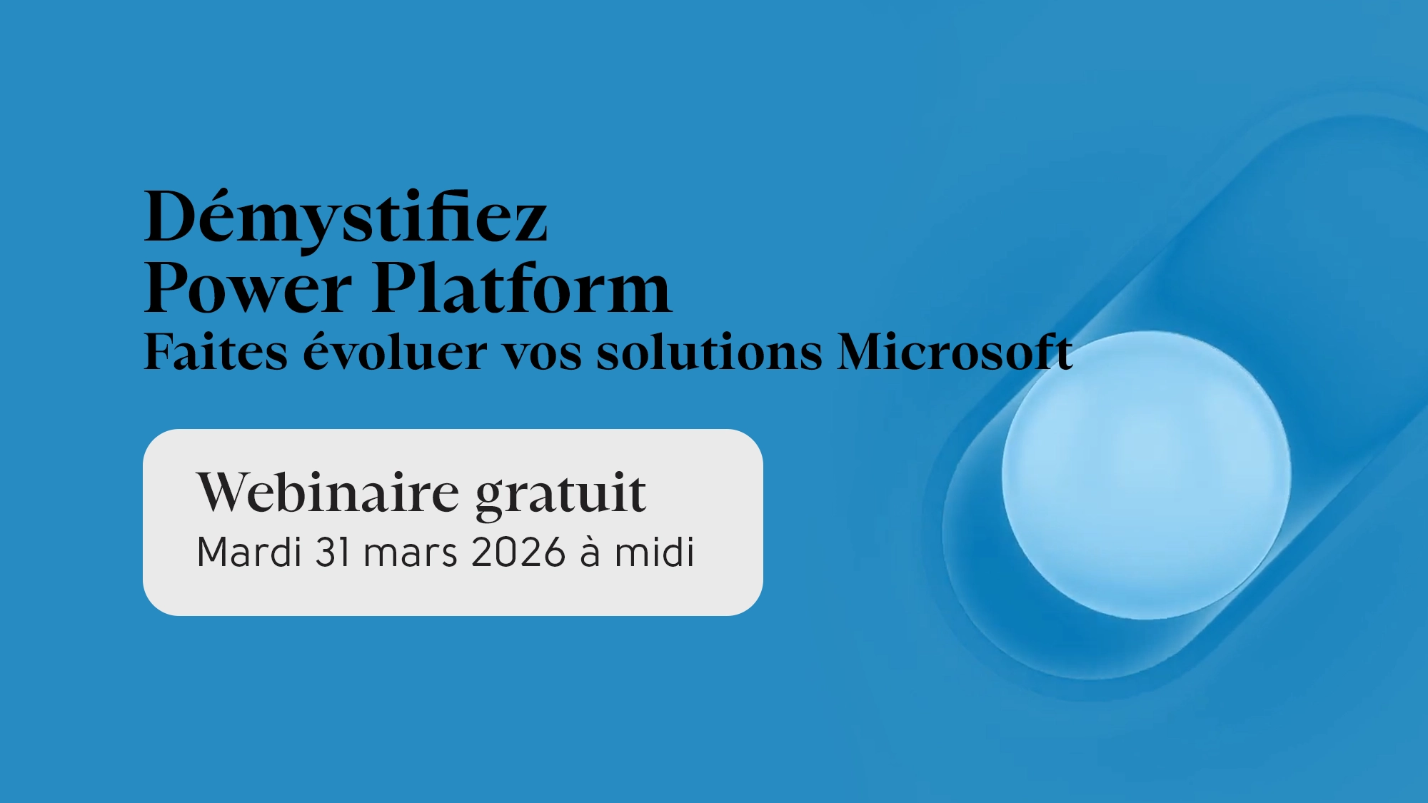 Inscrivez-vous à ce webinaire pour découvrir comment la Power Platform vous aide à tirer pleinement parti de vos données et à faire évoluer vos solutions Microsoft, sans complexité inutile.